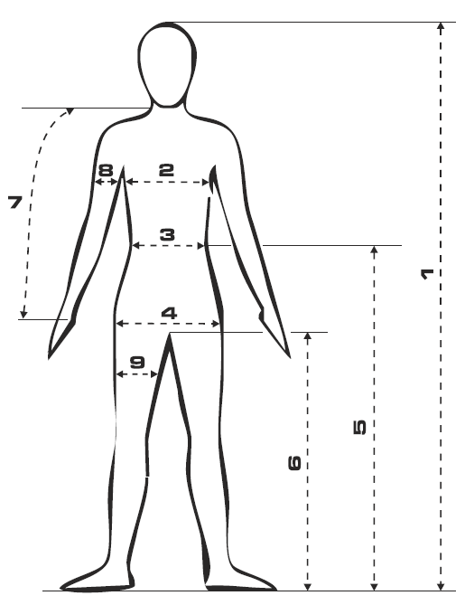 7 - délka paže (od krku k zápěstí)